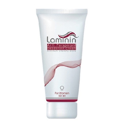 عرق کردن یکی از واکنشهای مفید بدن است و خود به تنهایی بویی ندارد و در همسایگی با باکتریهاست که باعث ایجاد بوی ناخوشایند میشود. کرمهای ضد تعریق لامینین ((Laminin یک گروه از دئودرانتها هستند که از ایجاد بوی بد پیشگیری میکنند و میزان عرق کردن در قسمتی که از کرم استفاده شده را کاهش میدهند. کرم ضد تعریق لامینین را میتوان در زیر بغل که از مرطوبترین و گرمترین قسمتهای بدن است و یا حتی سایر نقاط مانند کشالهی ران و کف دستها استفاده کرد. در ترکیبات این کرم از آلومینیوم کلروهیدرات استفاده شده که تعریق را کاهش میدهد و محیط مرطوب و مناسب رشد باکتریها را از بین میبرد. ترکیبات با پایهی آلومینیوم در این کرم باعث تحریک الکترولیتهای عرق میشود و میتواند مجرای خروجی غدد عرق را ببندد که به خشک ماندن سطح پوست کمک میکند. کرم ضد تعریق لامینین بدون ایجاد اثر چربی و چسبندگی باعث نرم شدن پوست میشود و با قدرت جذب و ماندگاری بالا و رایحهی مطبوعی که دارد تا ساعتها محل استفاده را خشک نگه میدارد. بهترین زمان استفاده از ضد تعریقها پس از استحمام و یا شستشوی محل مورد نظر است که با مالیدن کرم و ماساژ آن بر روی پوست به ماندگاری و تاثیر بیشتر آن کمک میکند. میزان pH این کرم در حد طبیعی و ساظگار با انواع پوستها است و در دو نوع زنانه و مردانه با رایحهی دلنشین و در حجم 50 میلی لیتر عرضه شده است.